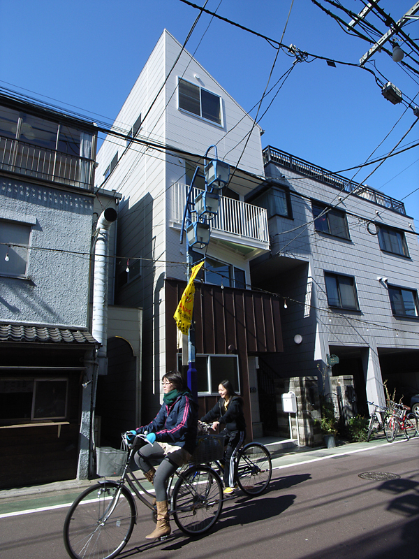 敷地は、51.7m2(15.7坪)という狭小地であり、隣家は迫っていて敷地境界線近くに建っています。