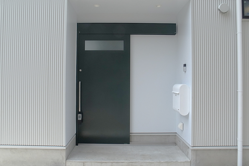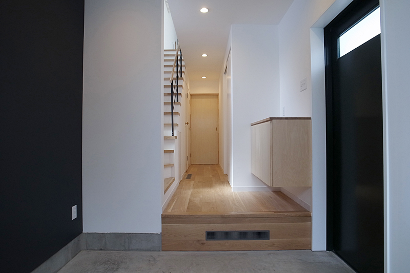 1階玄関には広い土間スペースを造り、建て主の趣味である革製品の製作スペースも兼ねています。