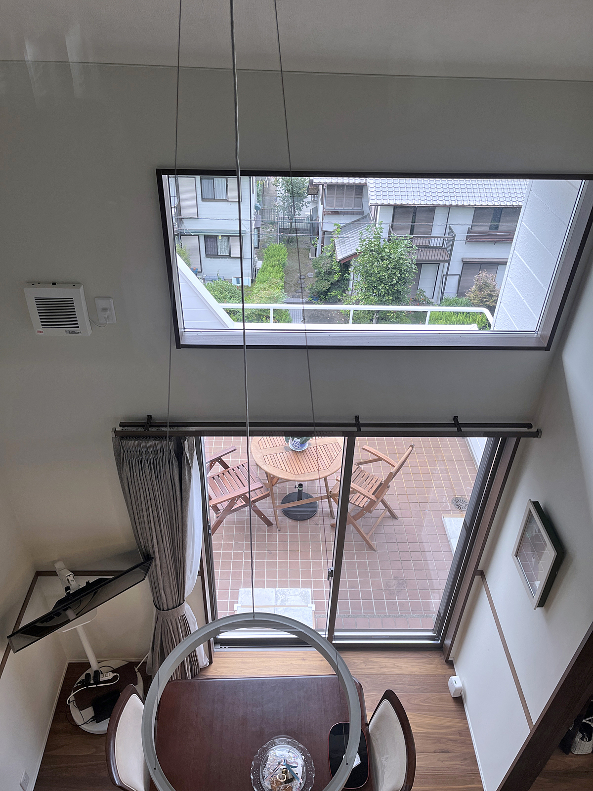 ・吹抜上部からの眺め。北側が斜面地になっているのがわかる。