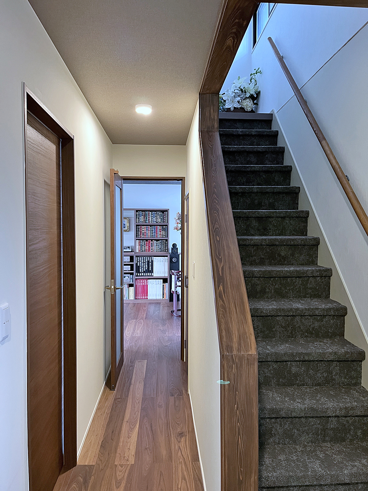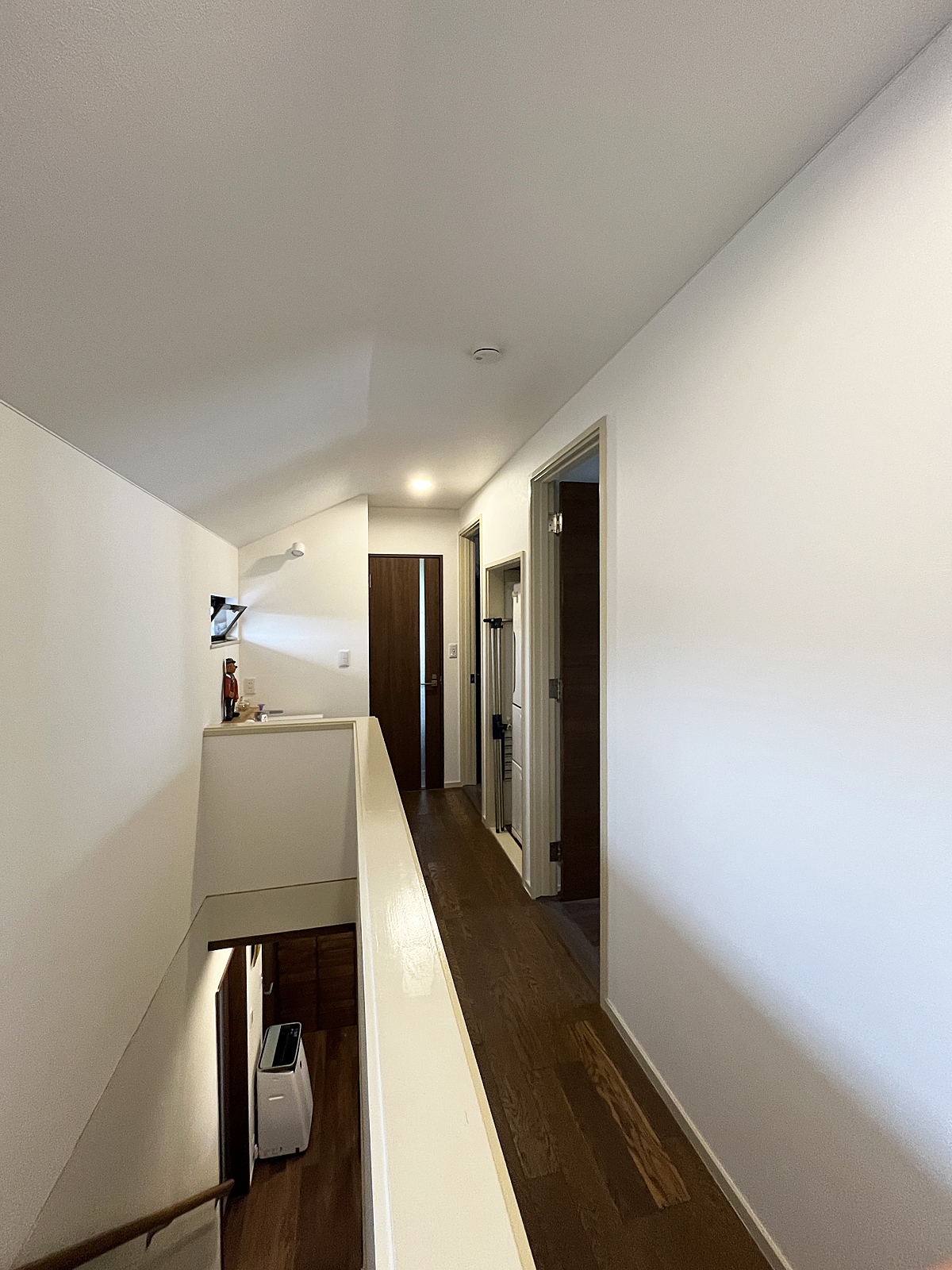 ・2階の廊下。ひび割れが多かったので、ボードを新たに貼り直した。